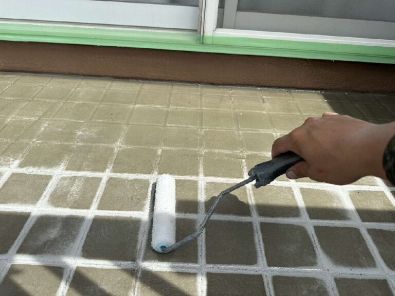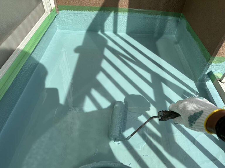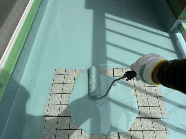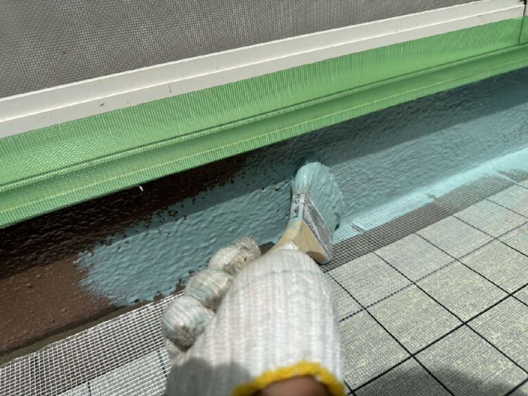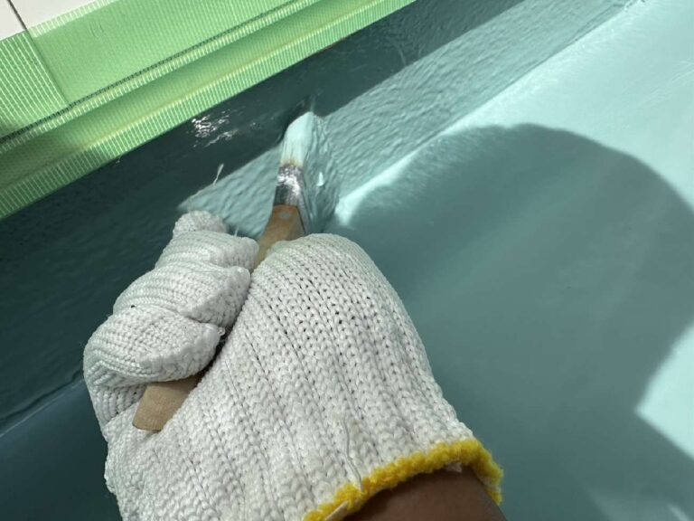 立上り部分にウレタン塗膜を塗布していきます。