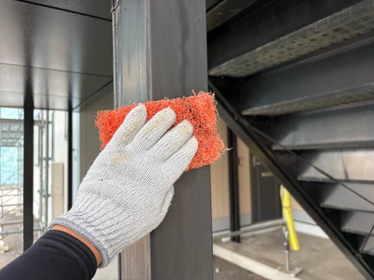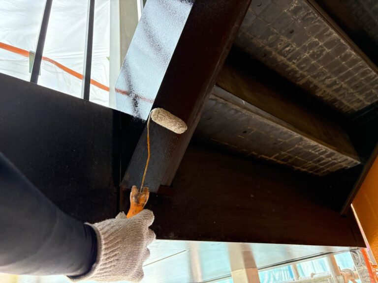 ケレン・清掃後、錆止めを塗布し、乾燥後2回手塗にて塗装を行います。