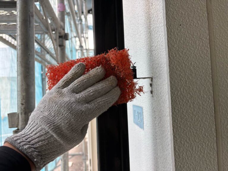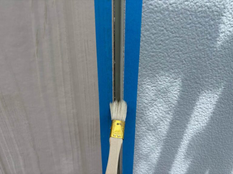 既存シーリング材を撤去後、プライマーを塗布し、シーリングを打設します。シーリング打設後、ヘラでならします。
