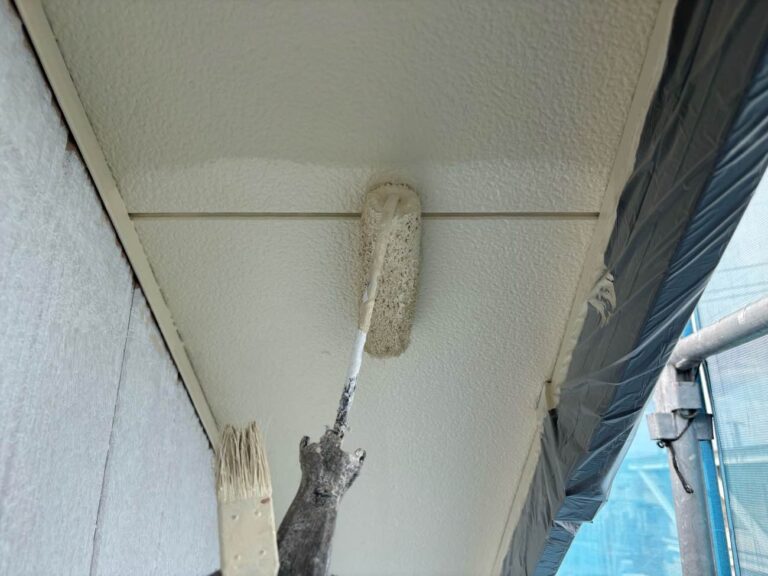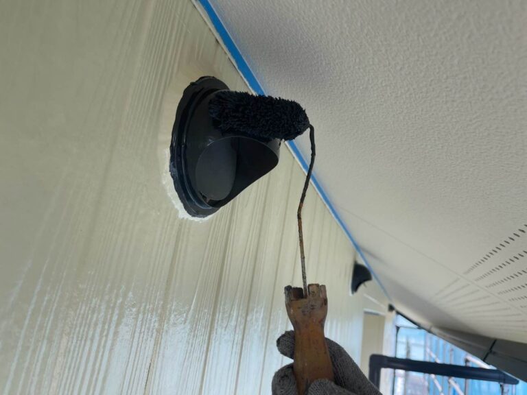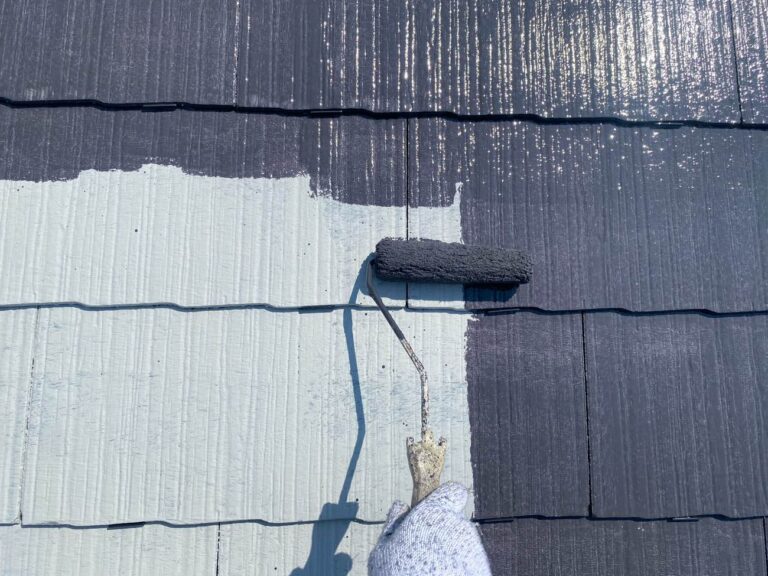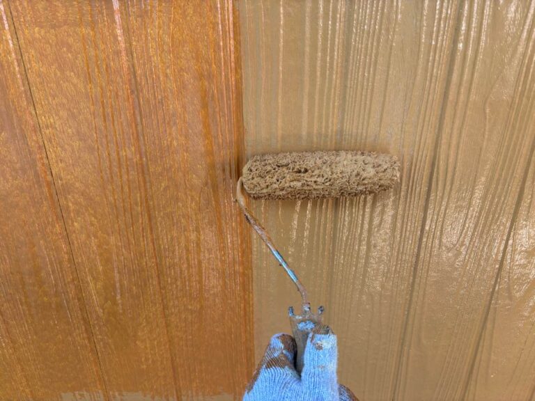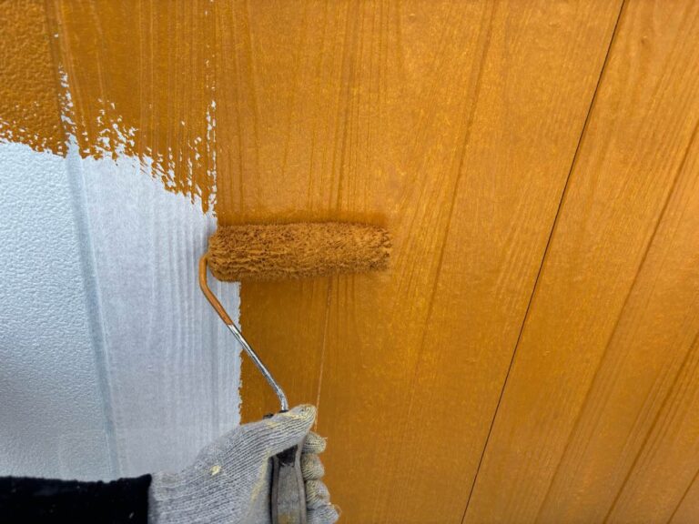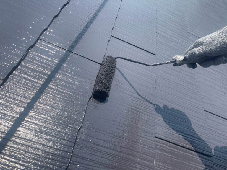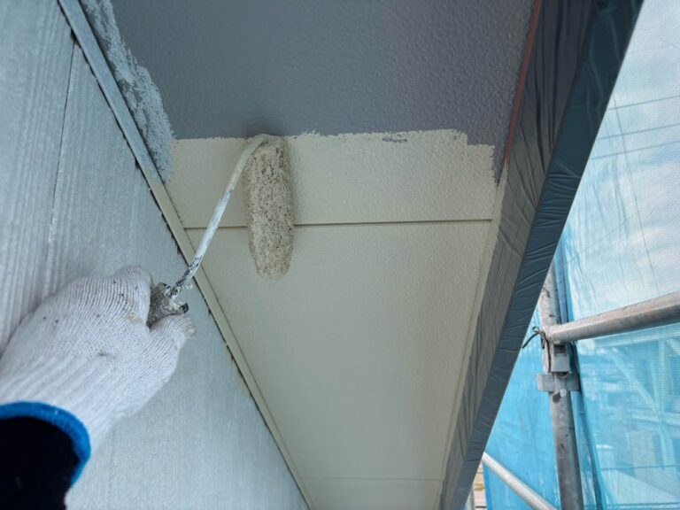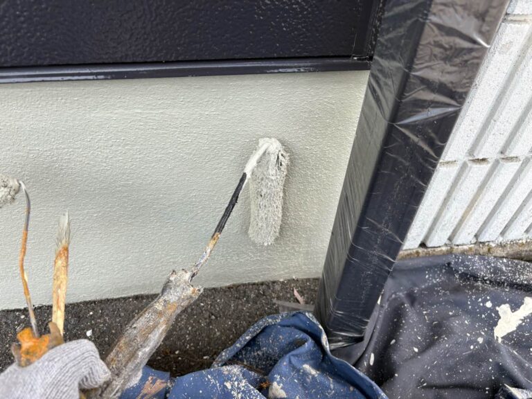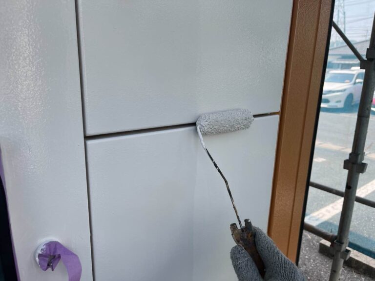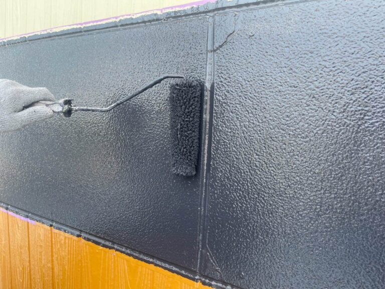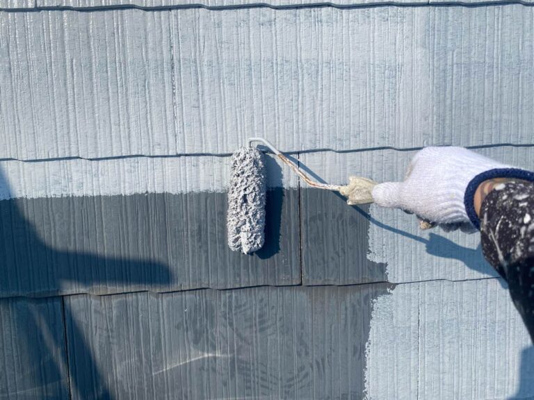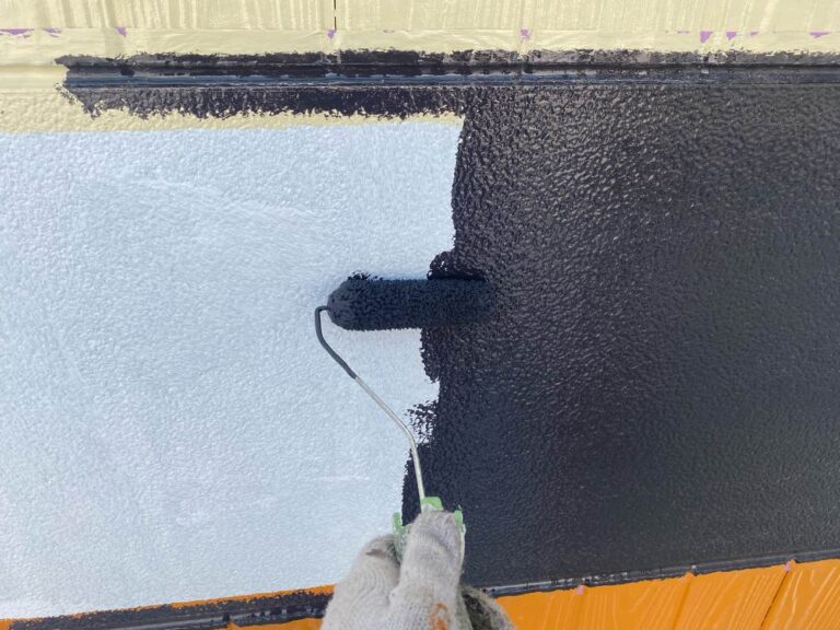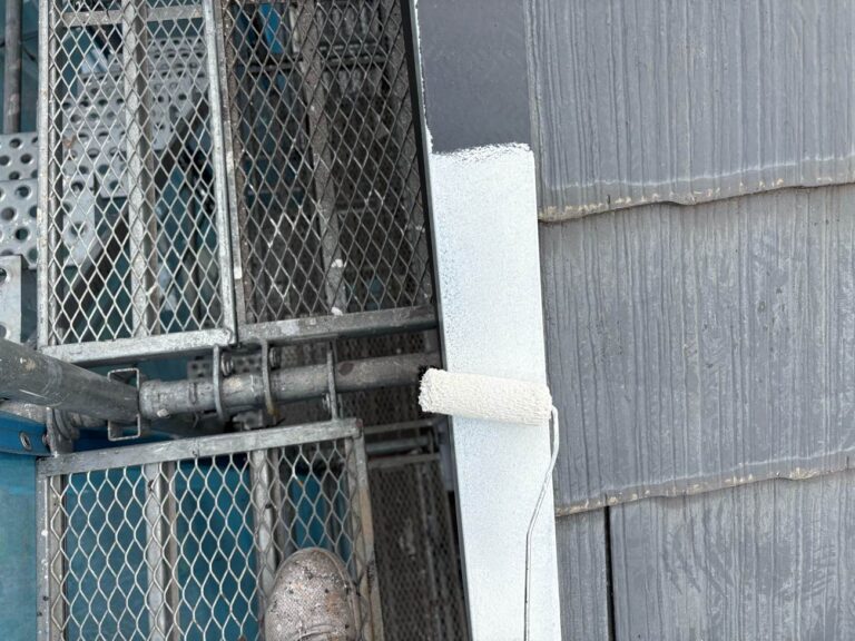 下塗り乾燥後、中塗りを塗装します。中塗り、上塗り塗料には美観性向上の他にも防水機能を高める効果があります。