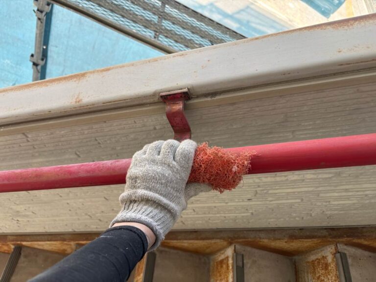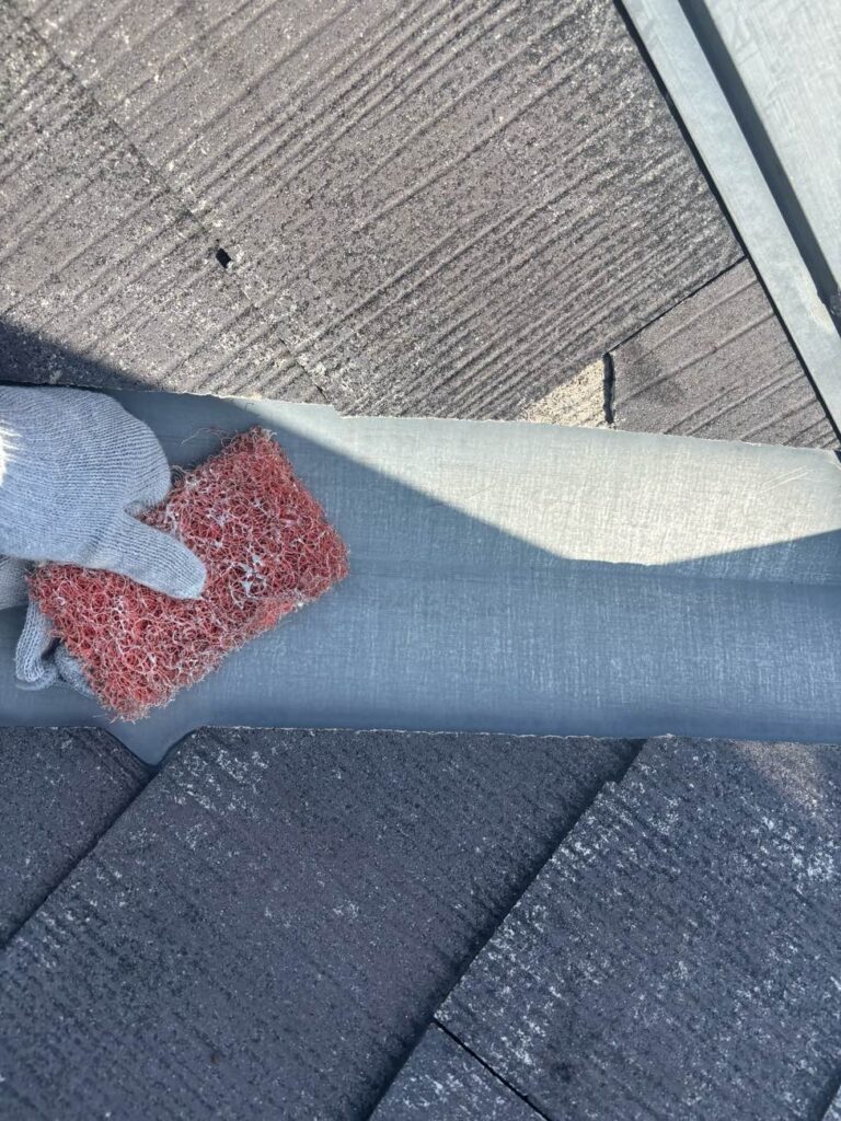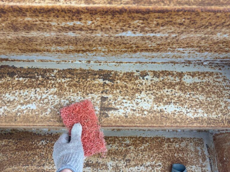 高圧洗浄によって汚れを除去します。その後、板金部分にケレン・錆止めを塗装します。