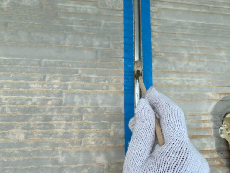 既存シーリング材を撤去後、プライマーを塗布し、シーリングを打設します。シーリング打設後、ヘラでならします。
