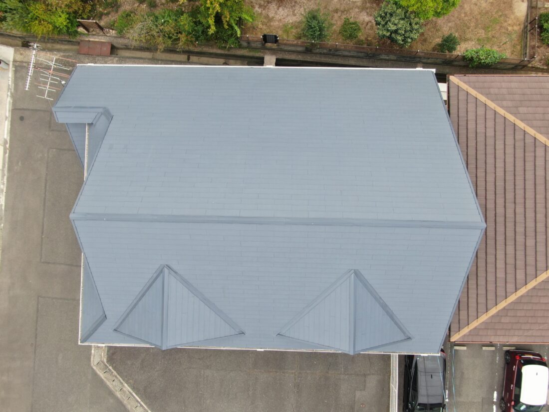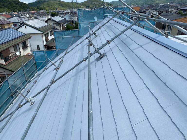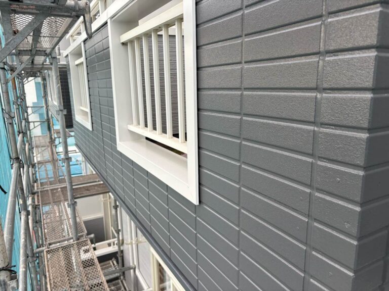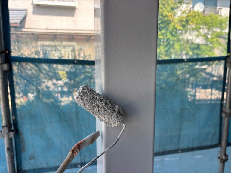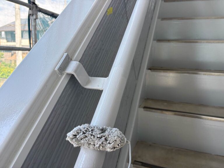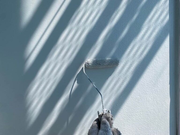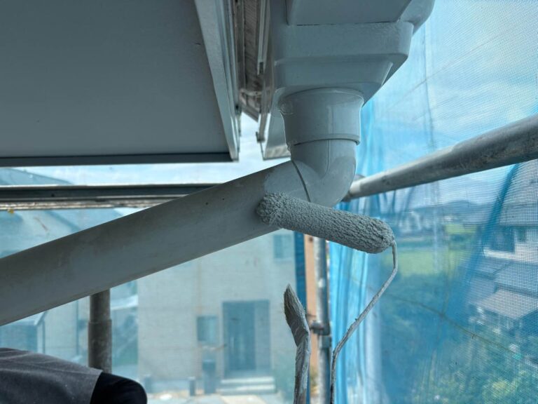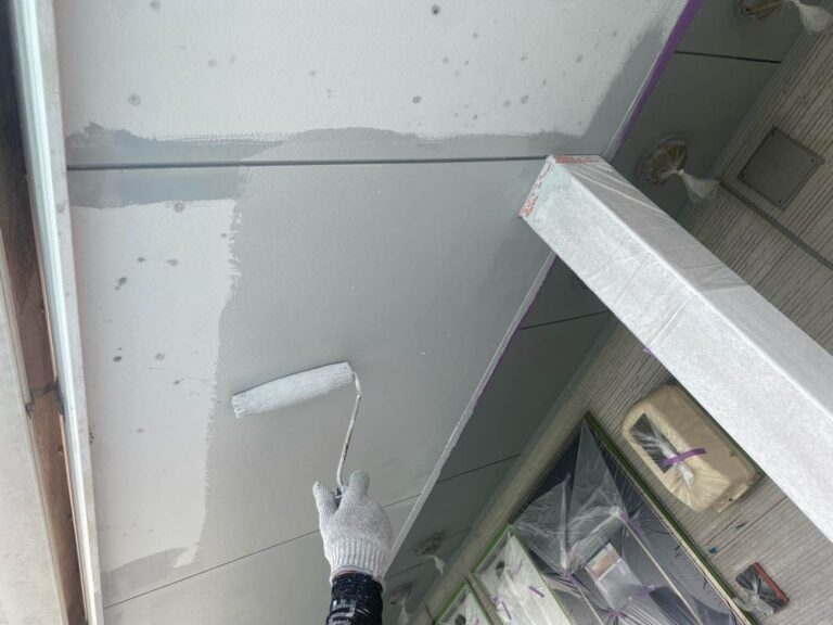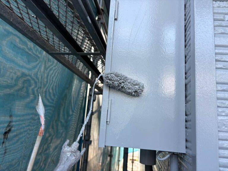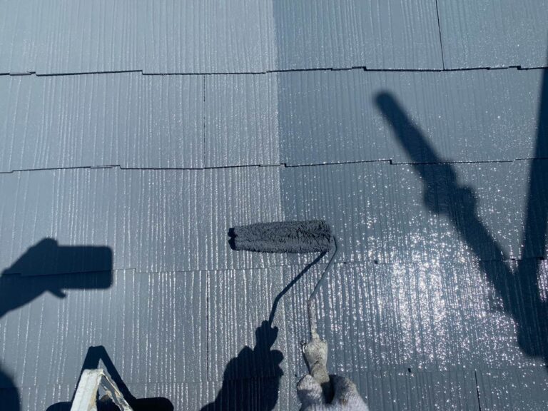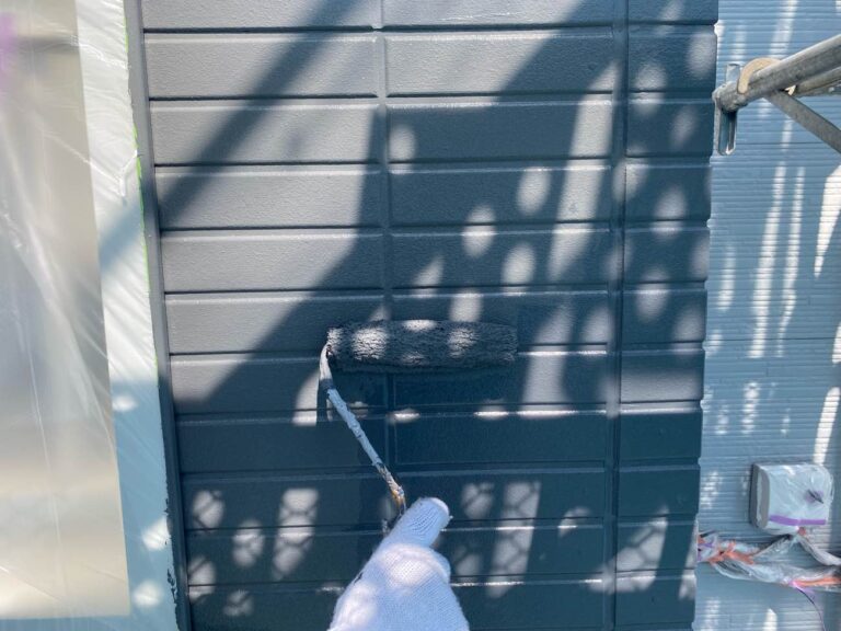 下塗り乾燥後、中塗りを塗装します。中塗り、上塗り塗料には美観性向上の他にも防水機能を高める効果があります。